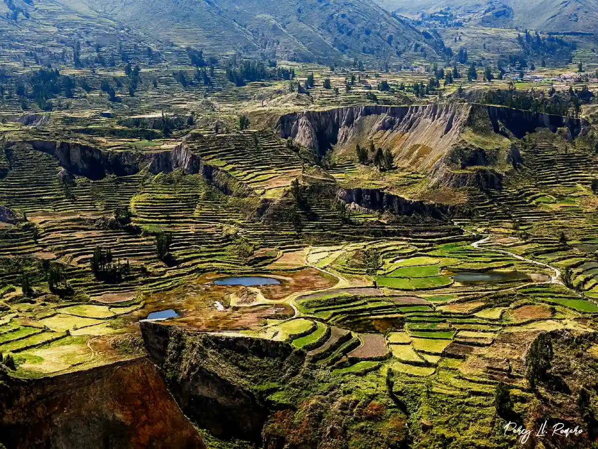 - Cañón del Colca (Arequipa) — formación natural de gran profundidad con miradores, pueblos coloniales y vuelos de cóndores sobre terrazas agrícolas preincaicas.